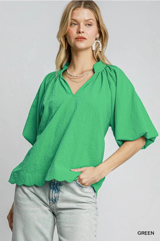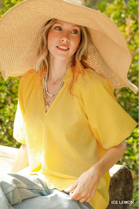 Bubble Sleeve Seersucker Blouse
