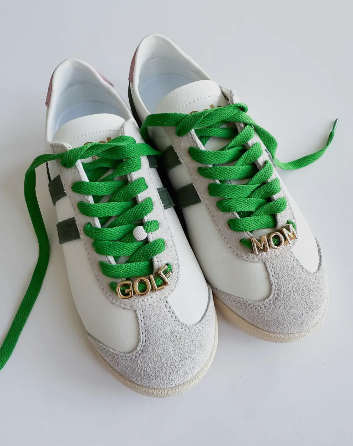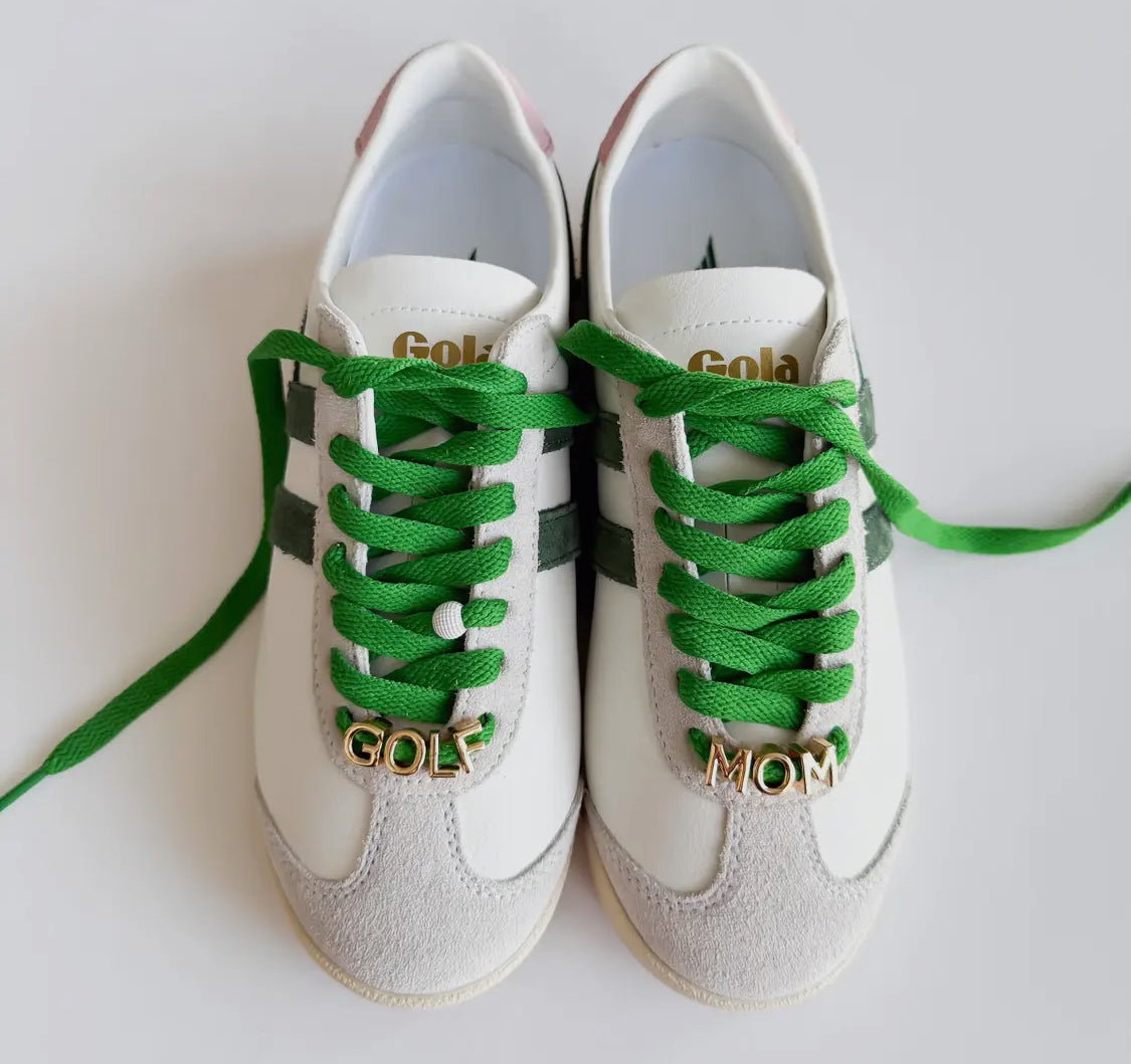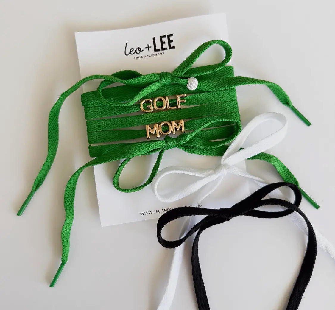 For the moms who drive the cart and the style game—this “GOLF MOM” sneaker set is a hole-in-one! Designed by Leo + Lee, this charm + lace bundle brings sporty glam to any sneaker. With bold gold letters and set of bright lace colors (you pick), this set makes a statement from the clubhouse to the sidewalk.