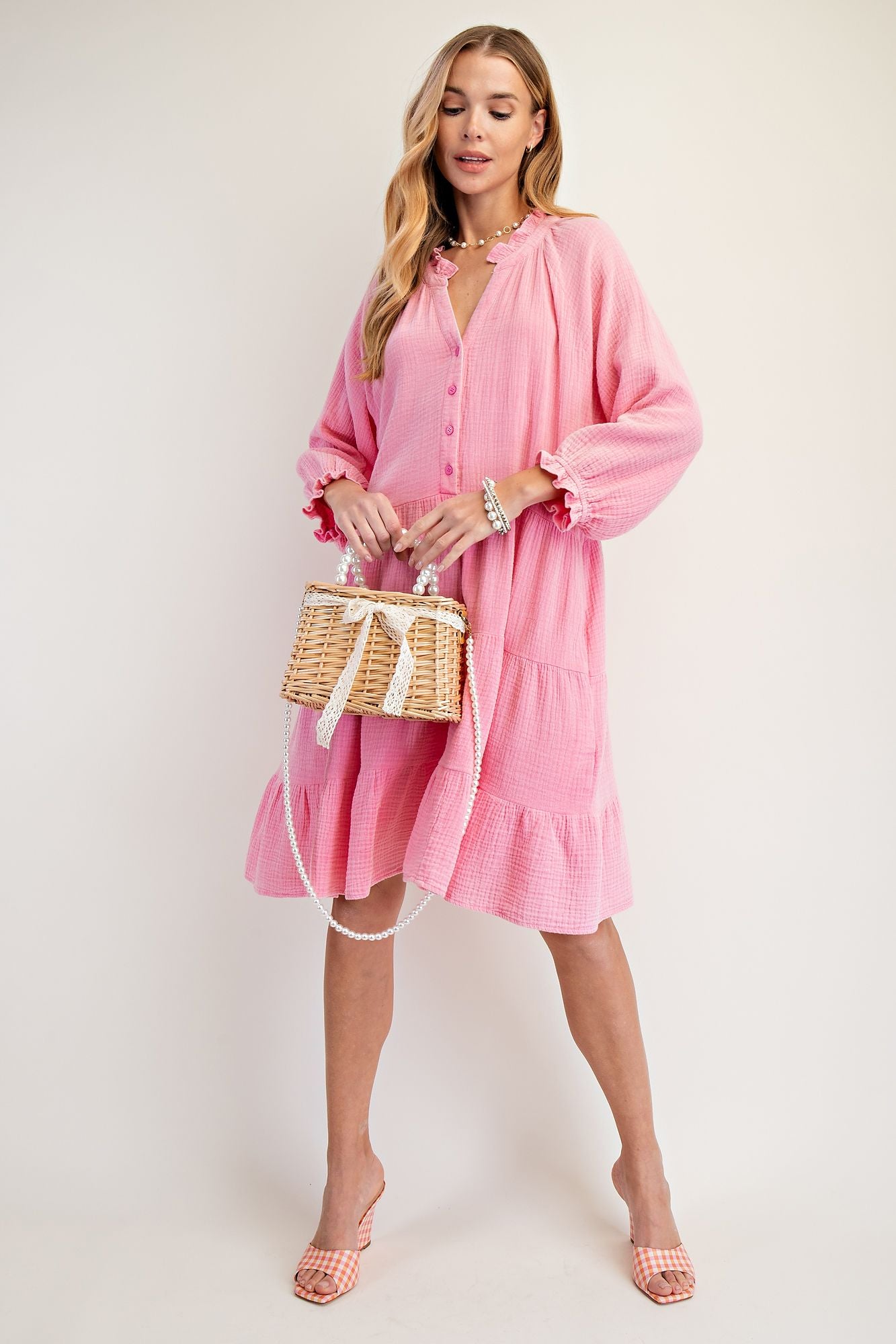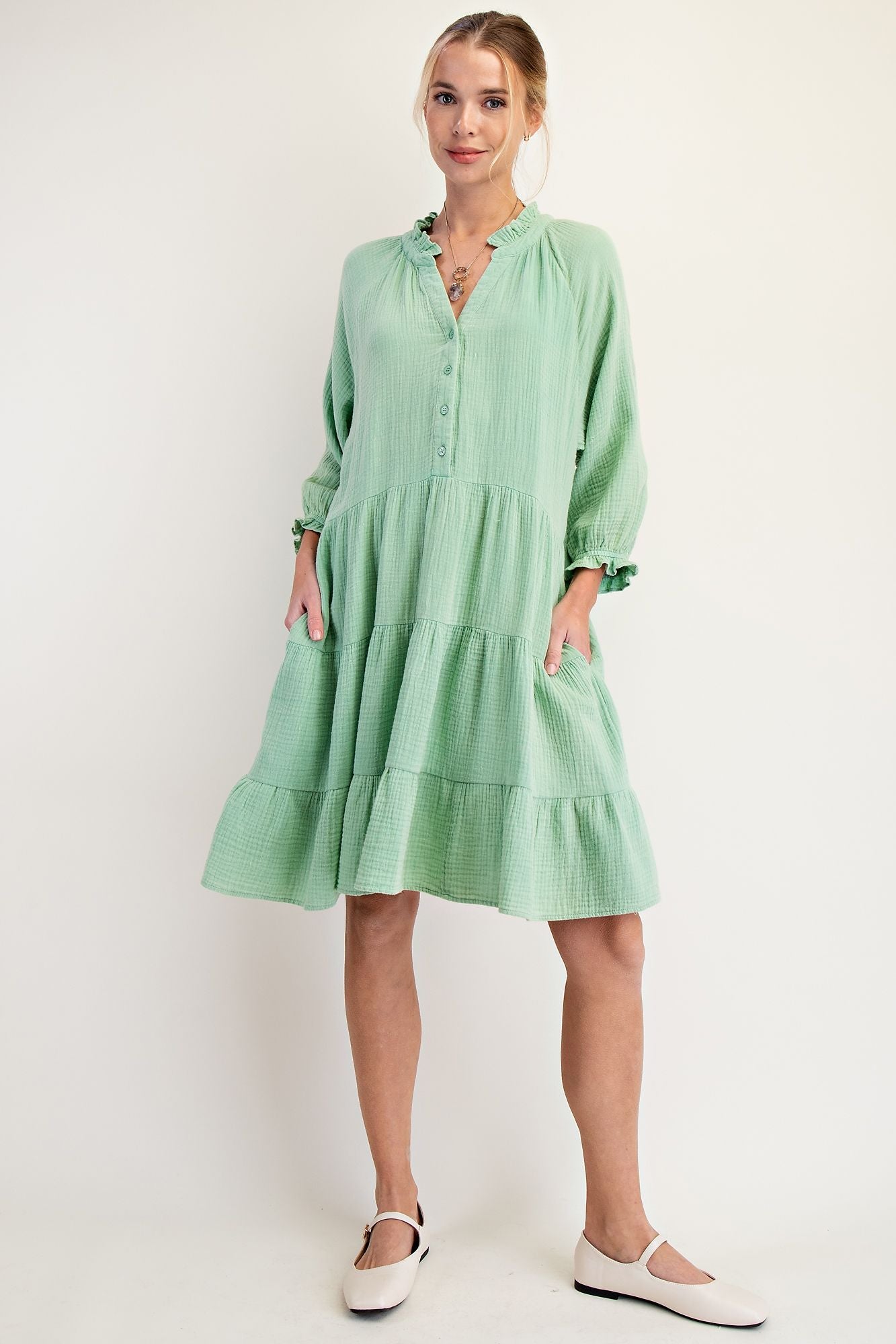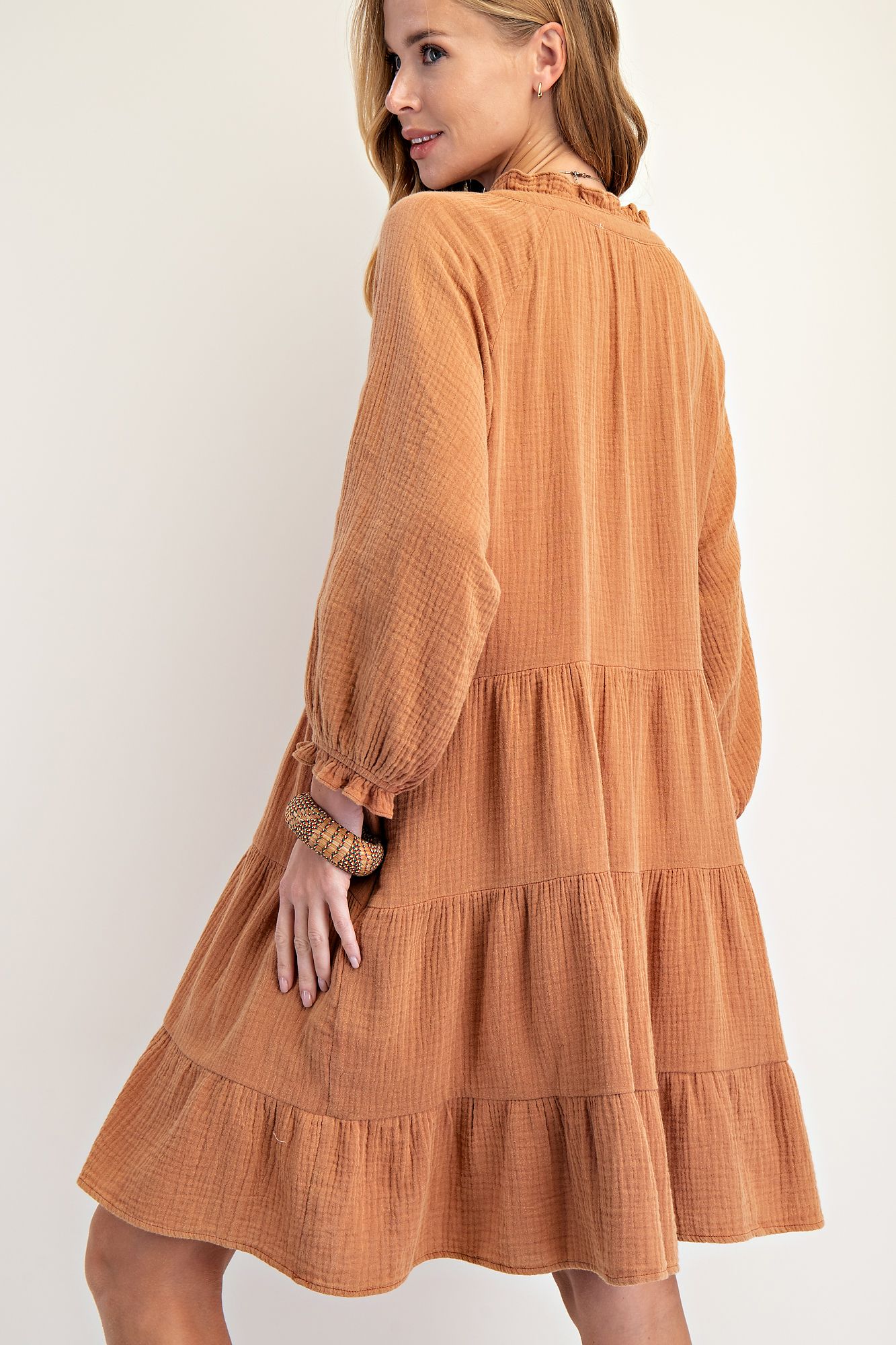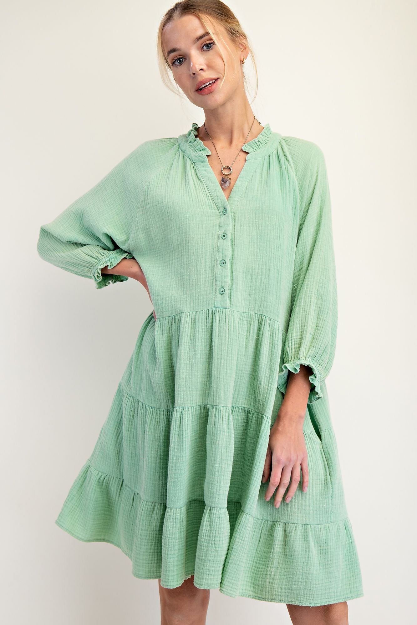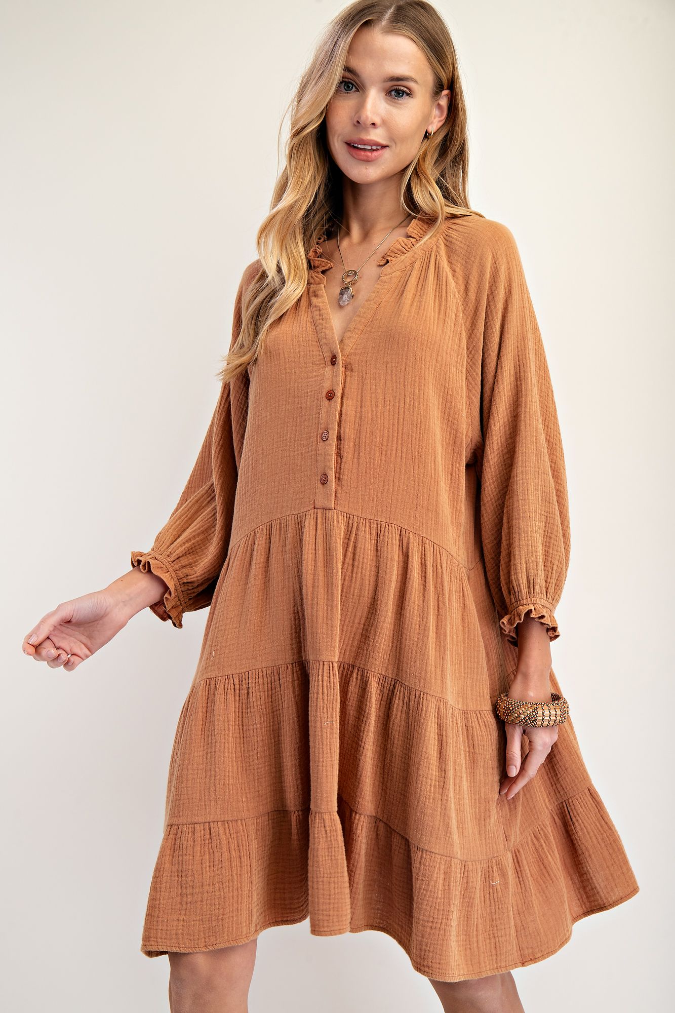 This dress will take you all the way through Spring and Summer! The light cotton material and the flattering tiered cut make this a must-have.