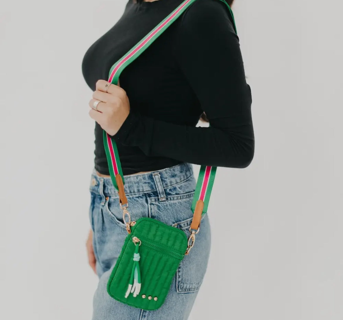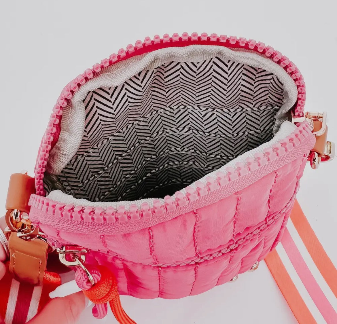 Meet the Starlette Quilted Crossbody Bag! Featuring a rope zipper pull, an exterior and interior pocket, an adjustable and removable strap, our 3 sister studs, and various coordinating color ways, this must have will be your new go-to! Elevate your style and get ready for any occasion with our new Starlette Quilted Crossbody Bag!