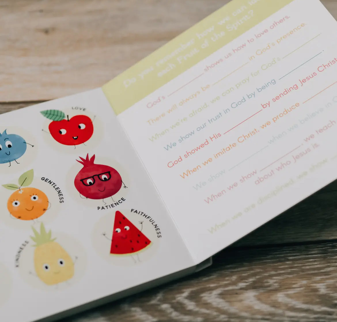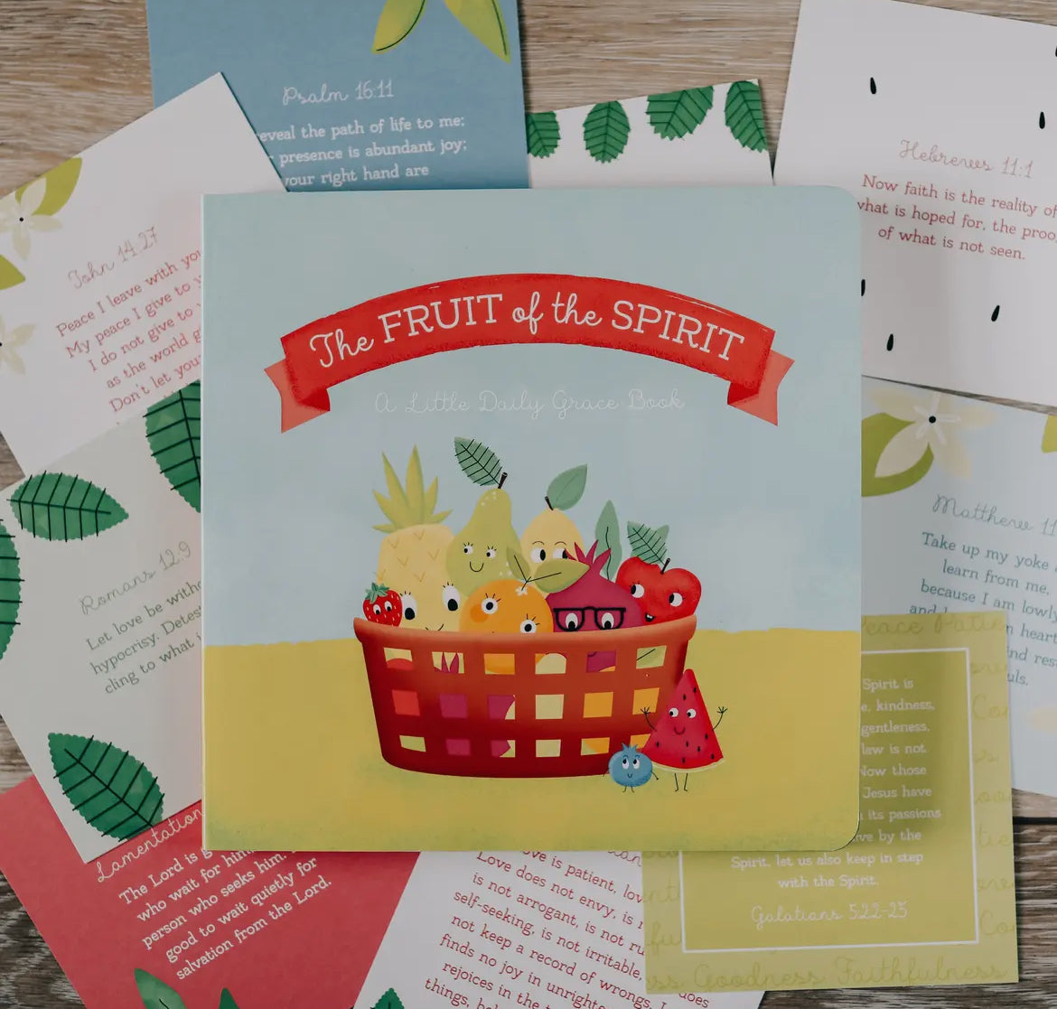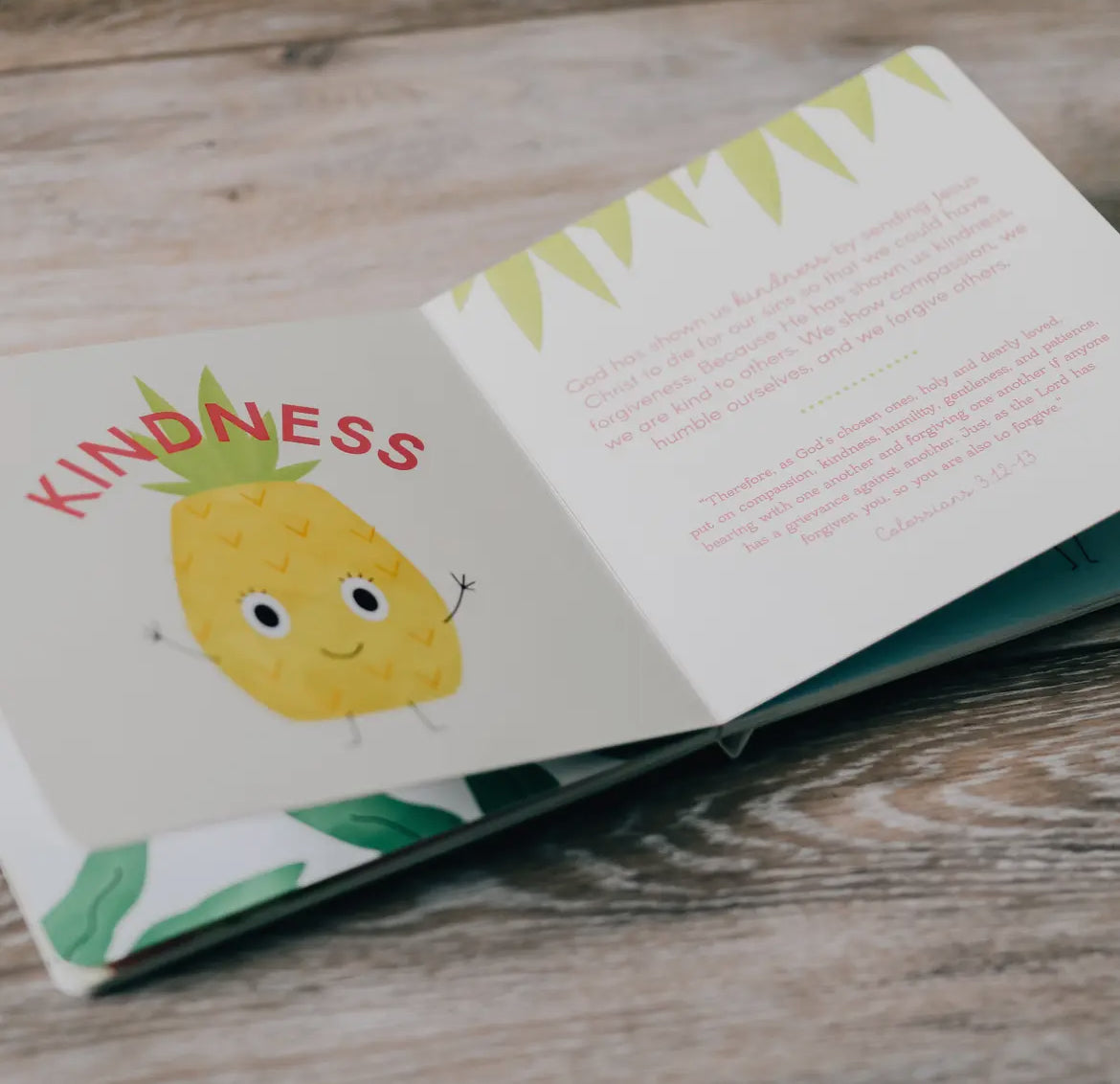 This adorable board book guides parents and children through the fruit of the Spirit. The book provides Scripture, definitions, and encouragement for families to walk in the fruit of the Spirit. There is even a fun matching game in the back of the book.